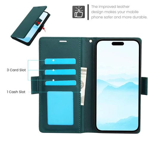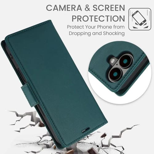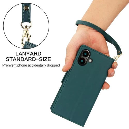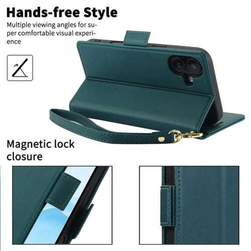 Funda de cuero antirrobo RFID con hebilla lateral para iPhone 17 (verde)