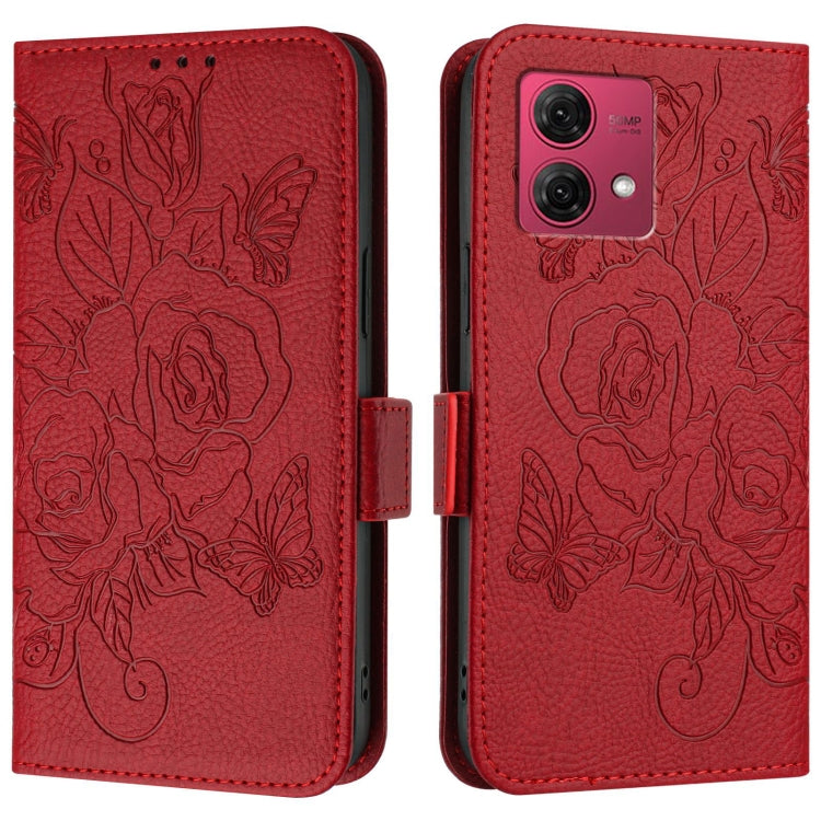 Funda de Cuero Antirrobo RFID con Relieve para Motorola Moto G84 5G (Rojo)