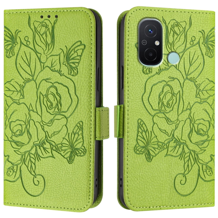 Funda de Cuero Antirrobo Rfid con Relieve En Rosa para Redmi 12C/11A (Verde)