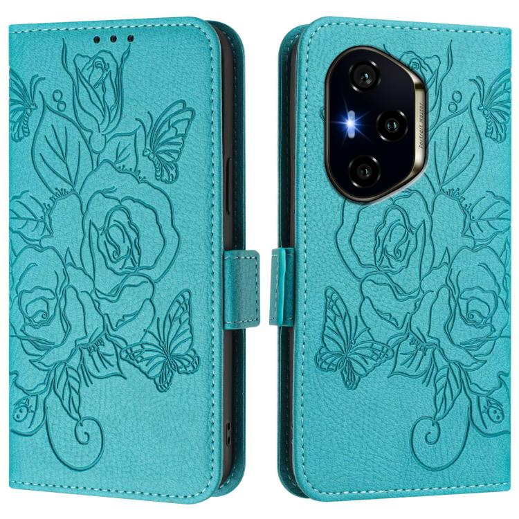 Funda de Cuero Antirrobo Rfid con Relieve Rosa para Honor 300 Pro 5G y 300 Ultra 5G (Azul Claro)