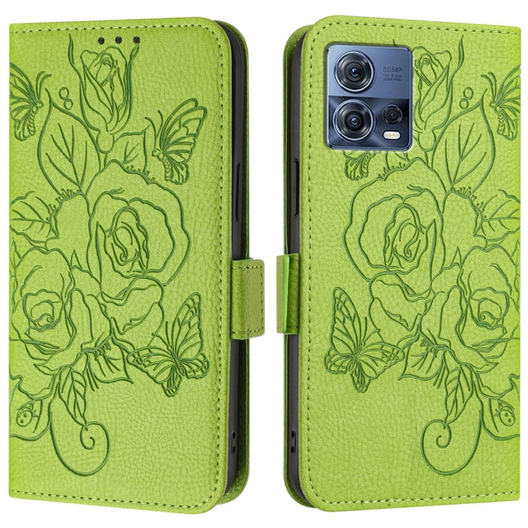 Funda de Cuero Antirrobo RFID con Relieve Rosa para Motorola Moto S30 Pro 5G (Verde)