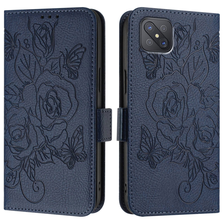 Funda de Cuero Antirrobo Rfid con Relieve Rosa para Oppo A92S 5G (Azul Oscuro)