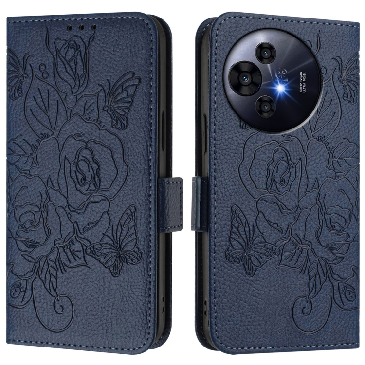 Funda de Cuero Antirrobo RFID con Relieve Rosa para Teléfono TCL 50 Pro Nxtpaper (Azul Oscuro)