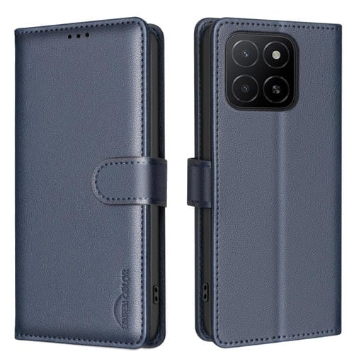 Funda de Cuero Antirrobo Rfid para Teléfono Honor X5B (Azul) con Textura de Lichi