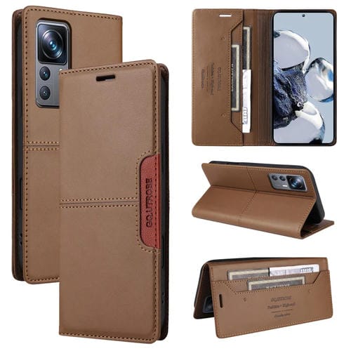 Funda de Cuero Antirrobo Rfid Gqutrobe G01 para Xiaomi 12T/12T Pro (Marrón)
