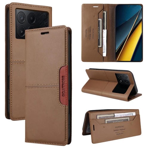 Funda de Cuero Antirrobo Rfid Gqutrobe G01 para Xiaomi Poco X6 Pro (Marrón)
