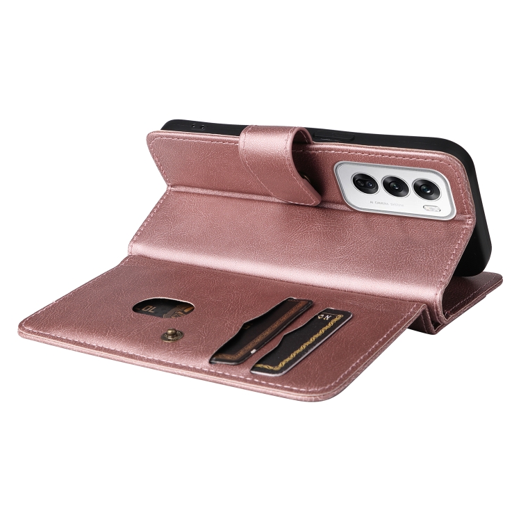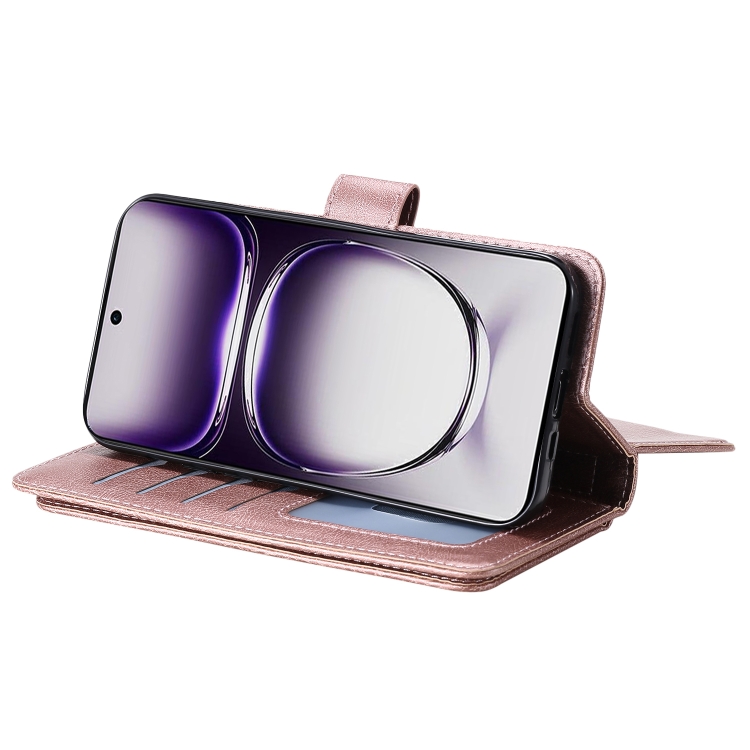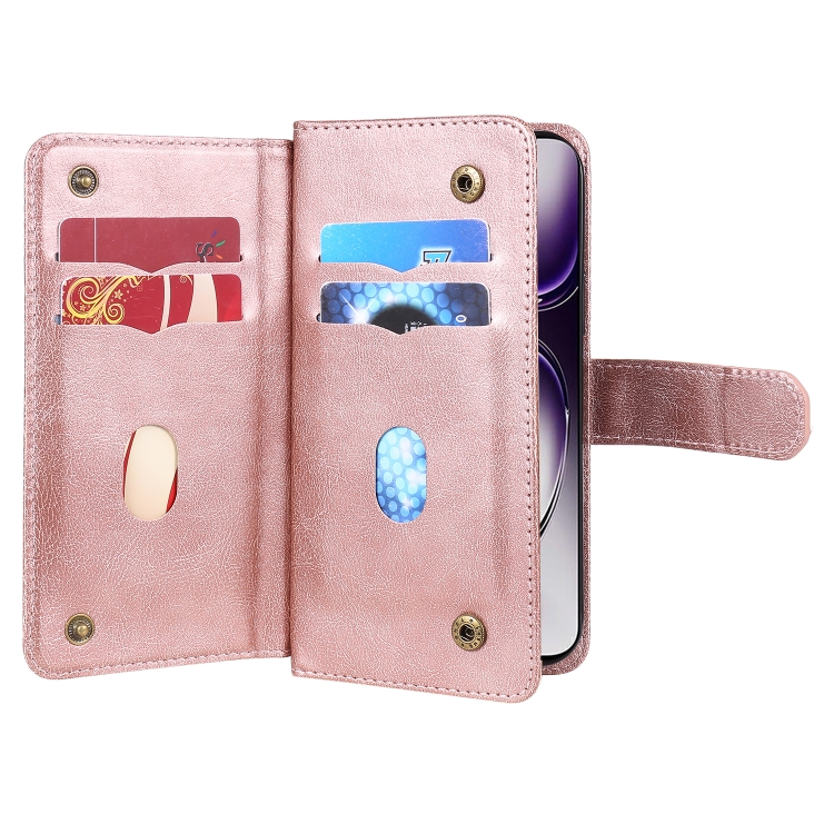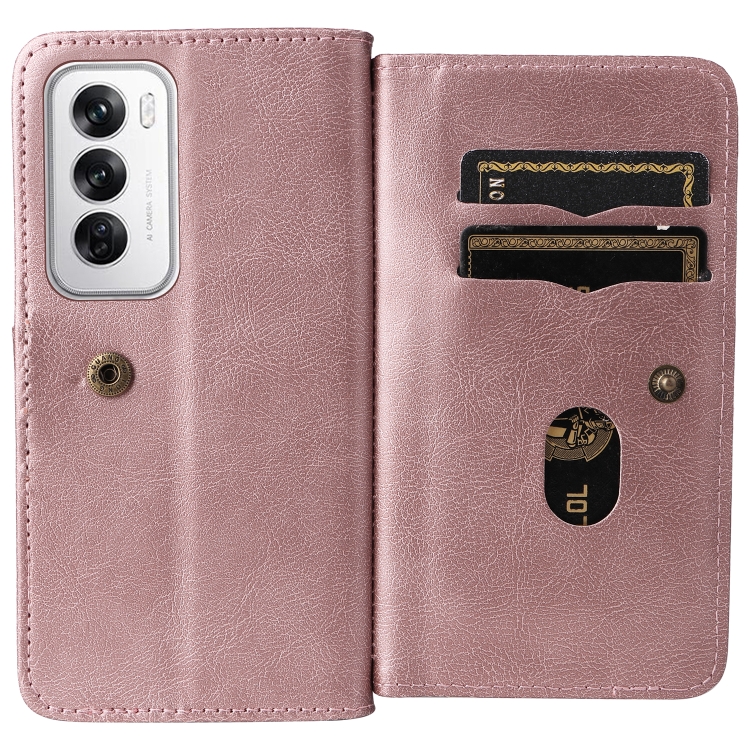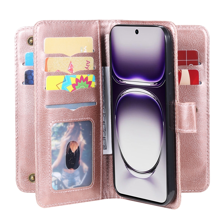 Funda de Cuero con 10 Ranuras para Tarjetas y Billetera Multifunción Global para Oppo Reno12 5G (Oro Rosa)