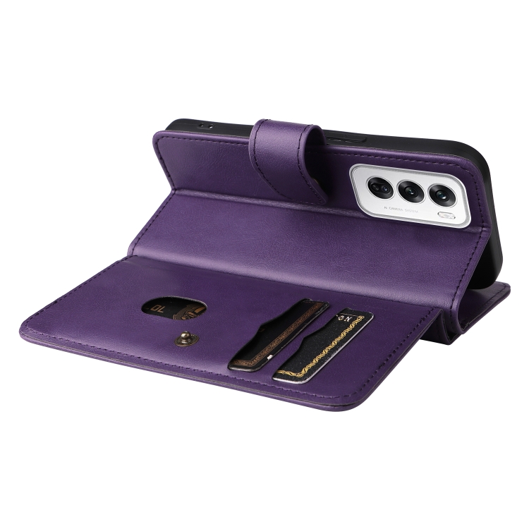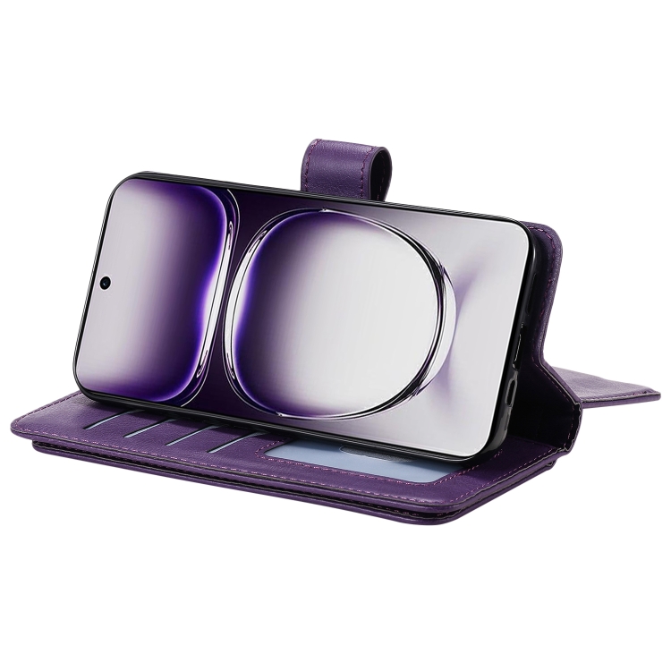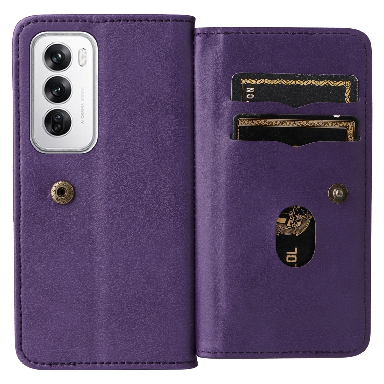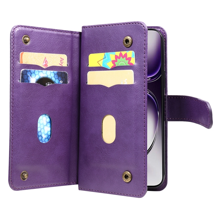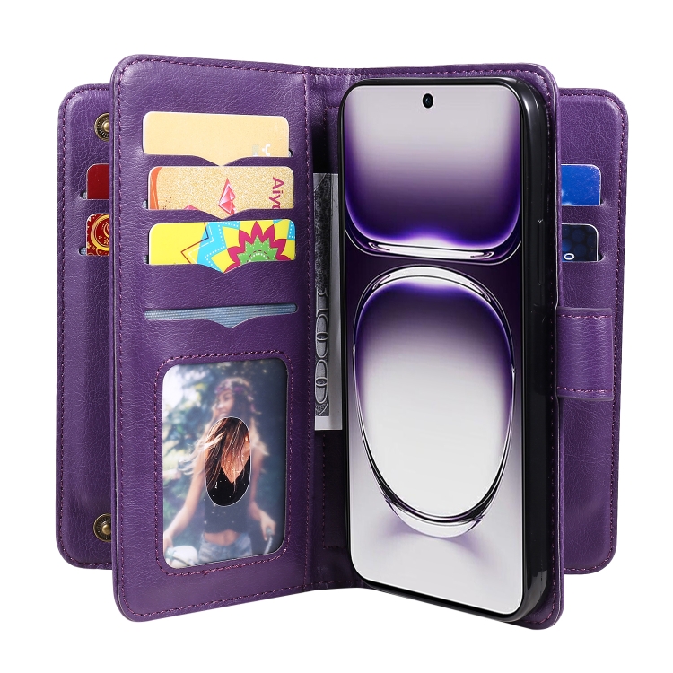 Funda de Cuero con 10 Ranuras para Tarjetas y Billetera Multifunción Global para Oppo Reno12 5G (Violeta)