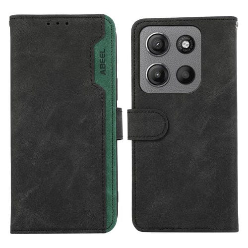 Funda de Cuero con Bloqueo Magnético RFID para Motorola Moto G15 4G/G05 Abeel (Negro y Verde)
