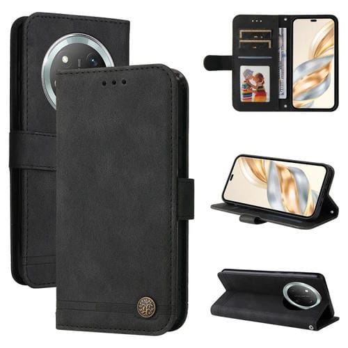 Funda de Cuero con Botones de Metal y Diseño Árbol de la Vida para Honor X9C/Magic7 Lite (Negro)