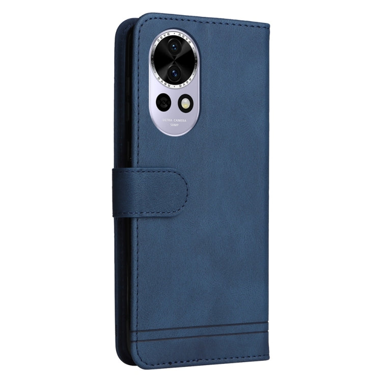 Funda de Cuero para Huawei Nova 13/Nova 12 con Botones de Metal y Diseño Árbol de la Vida (Azul)