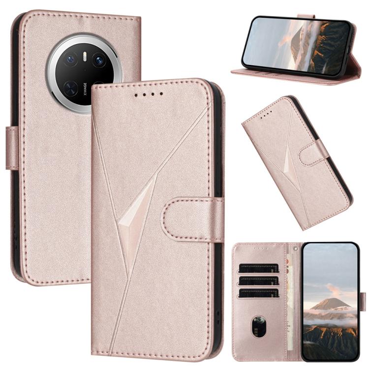 Funda de Cuero con Cierre de Hebilla y Diseño Triangular para Huawei Mate 70 (Oro Rosa)