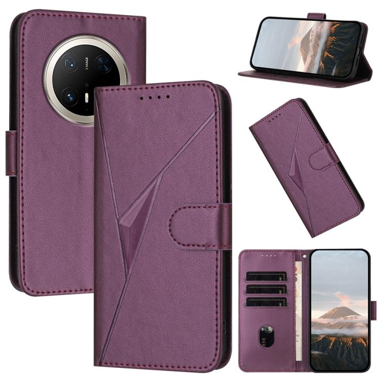 Funda de Cuero con Cierre de Hebilla y Diseño Triangular para Huawei Mate 70 Pro y Mate 70 Pro+ (Morado Oscuro)