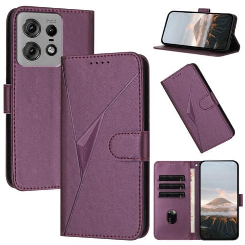 Funda de Cuero Motorola Edge 50 Pro con Cierre de Hebilla y Diseño Triangular (Morado Oscuro)
