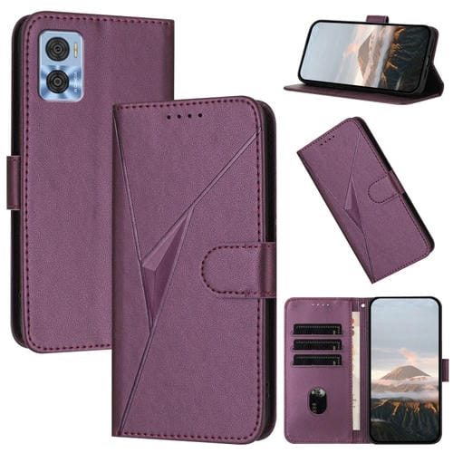 Funda de Cuero Motorola Moto E22 con Cierre de Hebilla y Diseño Triangular (Morado Oscuro)