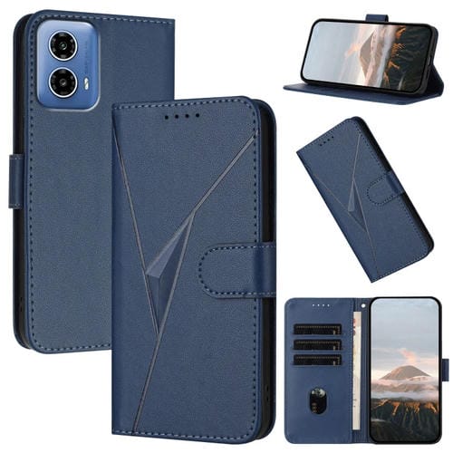Funda de Cuero Motorola Moto G34 con Cierre de Hebilla y Diseño Triangular (Azul Real)