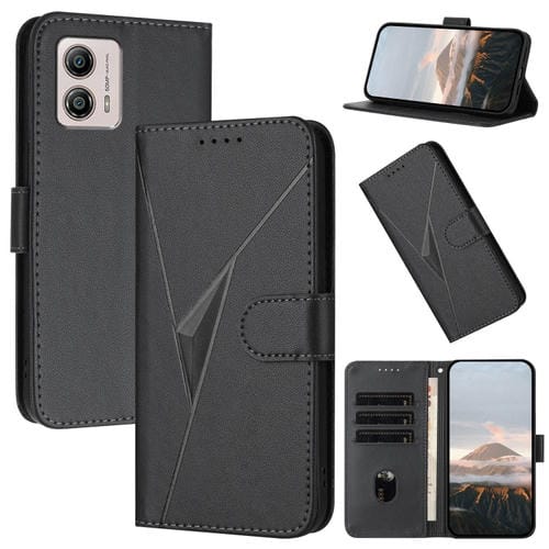 Funda de Cuero Motorola Moto G53 con Cierre de Hebilla y Diseño Triangular (Negro)
