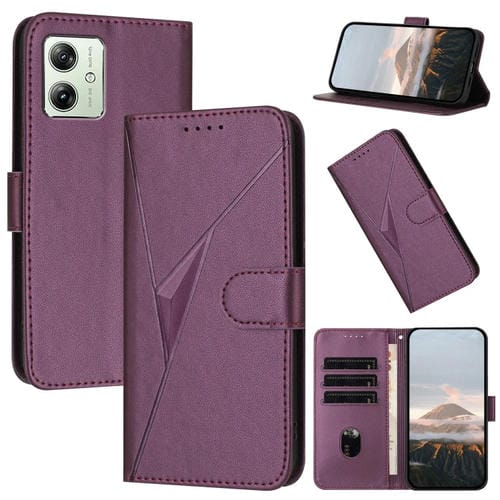 Funda de Cuero para Motorola Moto G54 5G Global/Eu con Cierre de Hebilla y Diseño Triangular (Morado Oscuro)