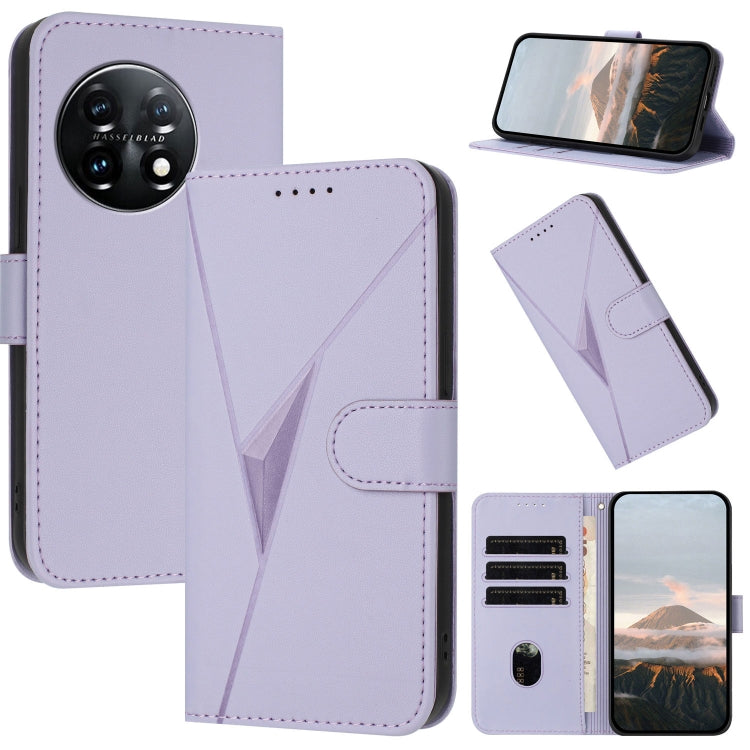Funda de Cuero para OnePlus 11 con Cierre de Hebilla y Diseño Triangular (Morado Claro)