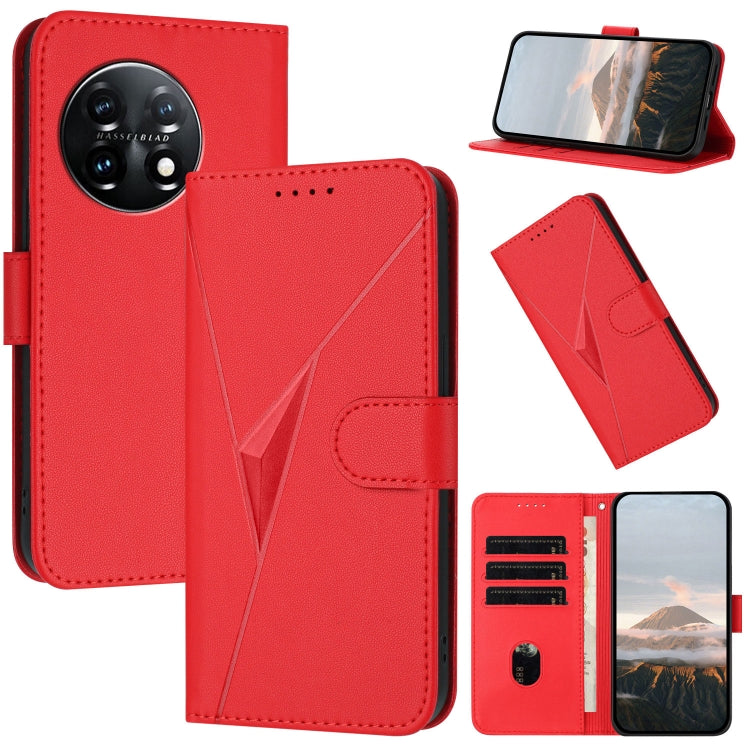 Funda de Cuero para OnePlus 11 con Cierre de Hebilla y Diseño Triangular (Rojo)