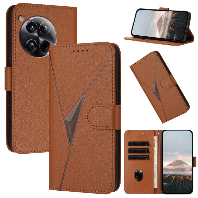 Funda de Cuero para OnePlus 12 con Cierre de Hebilla y Diseño Triangular (Marrón)