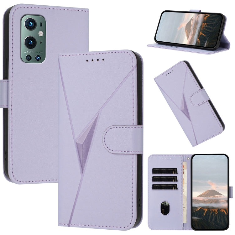Funda de Cuero con Cierre de Hebilla y Diseño Triangular para OnePlus 9 Pro (Morado Claro)