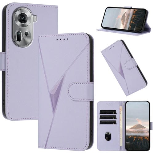 Funda de Cuero con Hebilla y Diseño Triangular para Oppo Reno11 Global (Morado Claro)