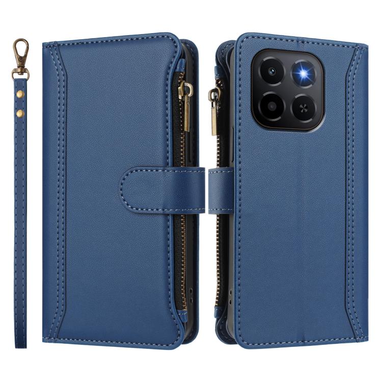 Funda de cuero con cierre magnético para Honor X6c 4G, 9 ranuras para tarjetas, cremallera y correa de mano (azul oscuro)