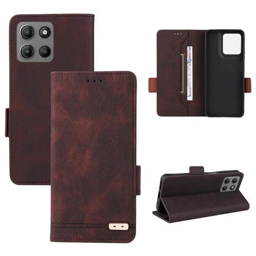 Funda de Cuero con Cierre Magnético para Motorola Moto G15 (Marrón)