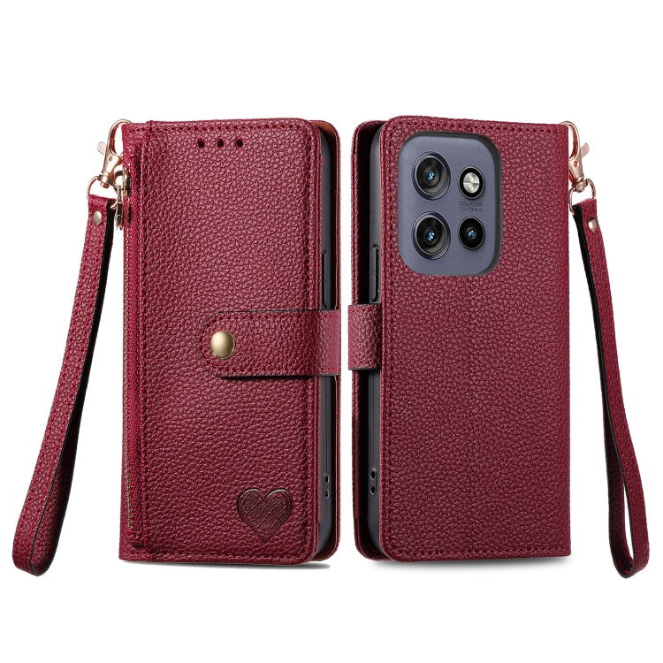 Funda de Cuero con Cordón y Cremallera Love para Motorola Moto S50 (Roja)