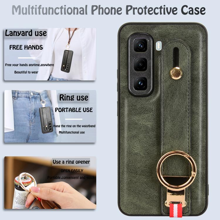 Funda de Cuero con Correa para El Brazo para Infinix Hot 50 Pro+ 4G X6880 (Verde)