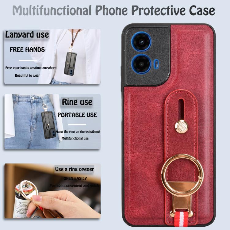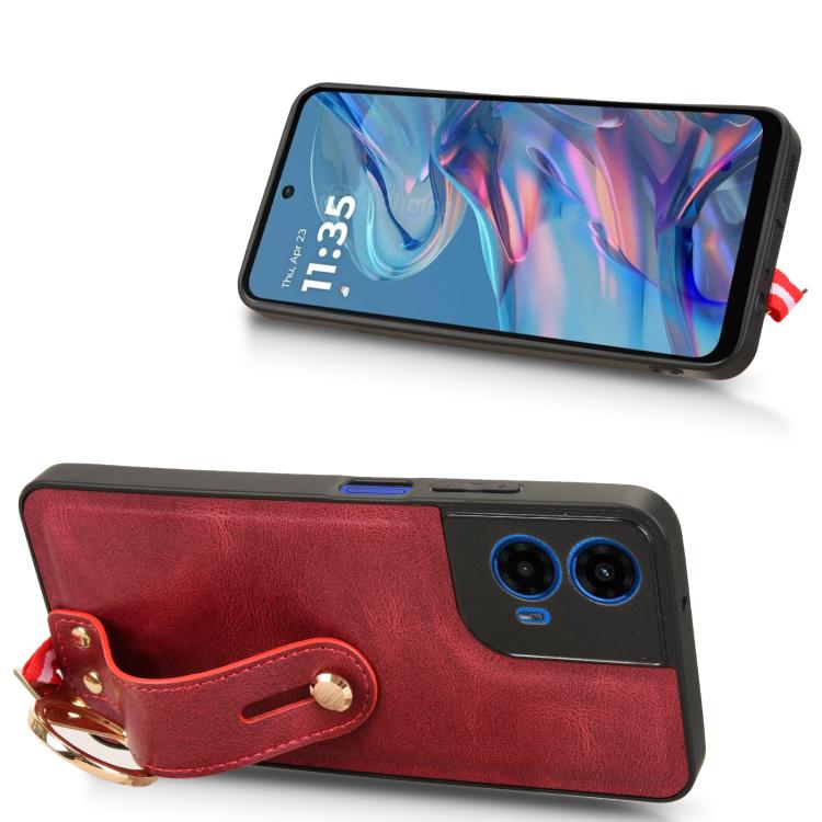 Funda de Cuero con Correa para el Cuello Motorola Moto G45 5G (Rojo)