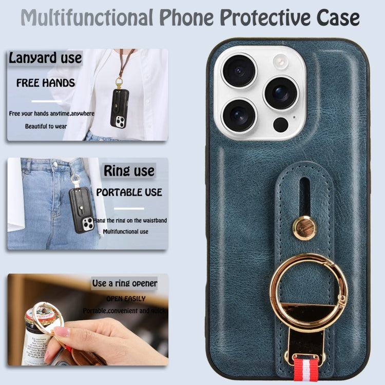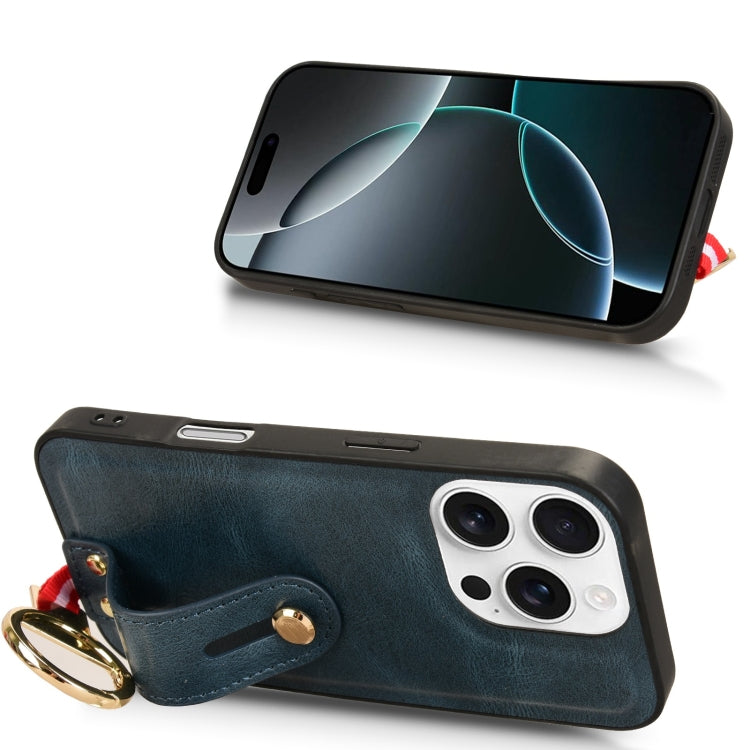Funda de Cuero con Correa para la Muñeca para iPhone 16 Pro (Azul)