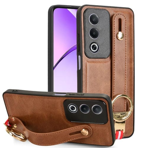 Funda de Cuero con Correa para la Muñeca para Oppo K12X 5G/A3 Pro Global (Marrón)