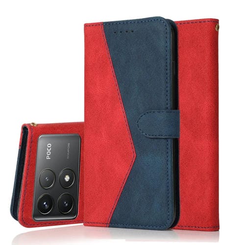 Funda de Cuero con Costura de Dos Colores para Teléfono Xiaomi Poco F6 Pro (Rojo y Azul)