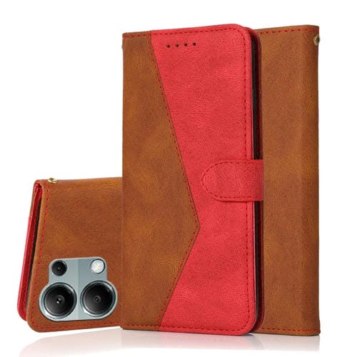 Funda de Cuero con Costuras de Dos Colores para Redmi Note 13 Pro 4G (Marrón y Rojo)