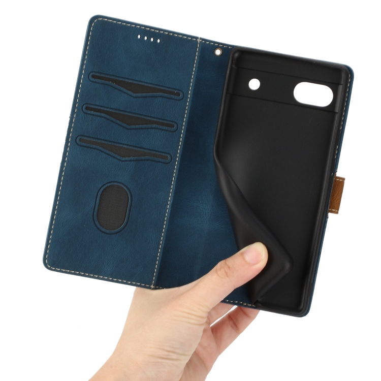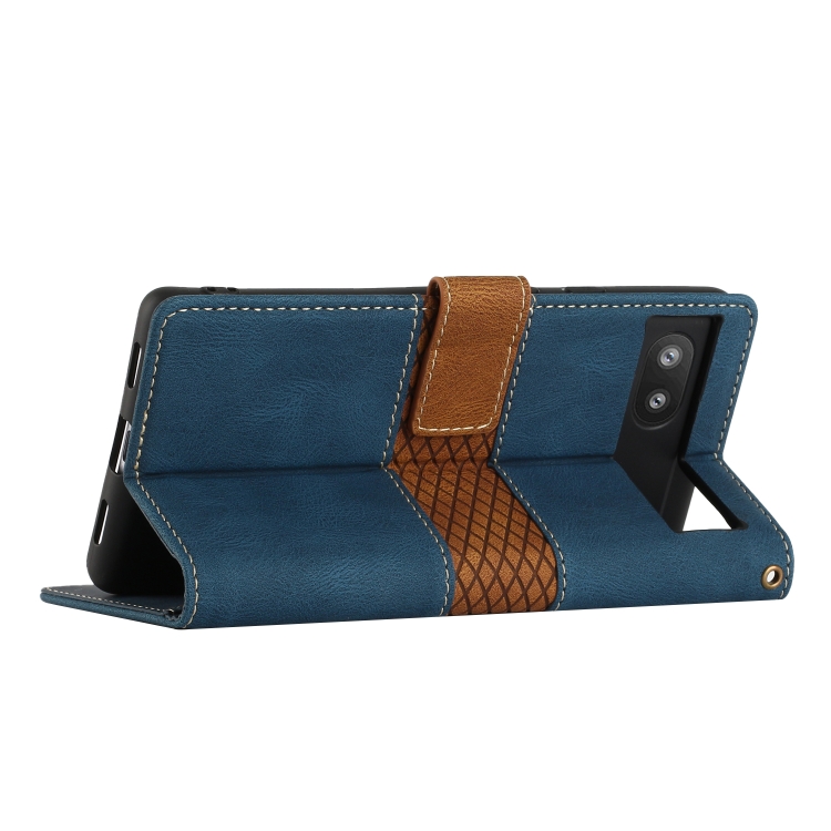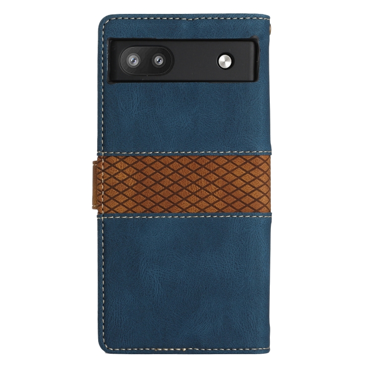 Funda de Cuero con Costuras en Cuadrícula para Google Pixel 6A con Cordón (Azul)