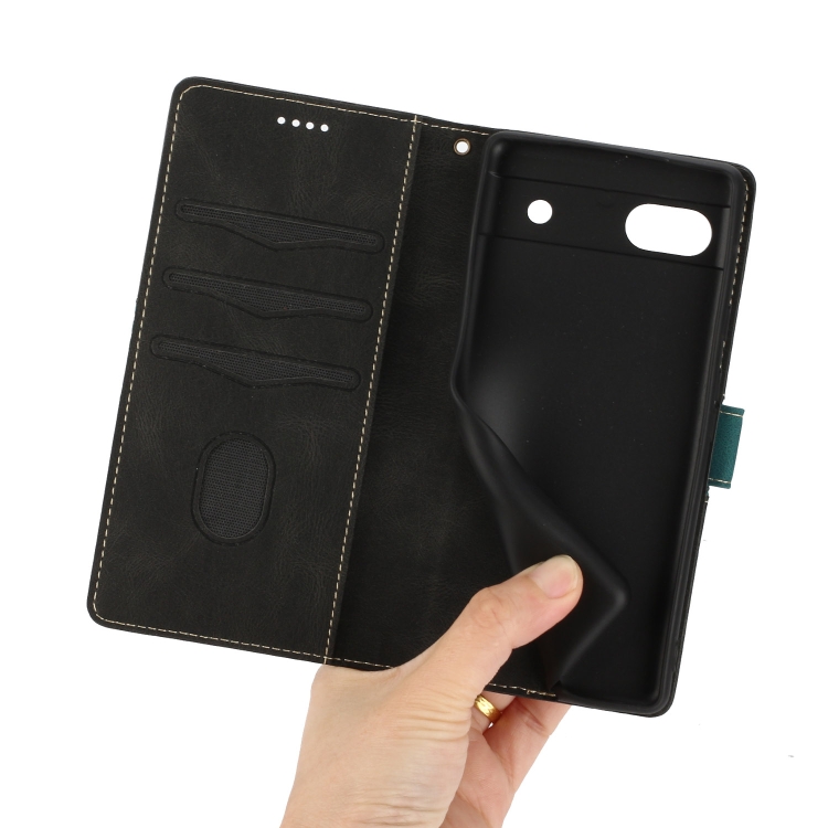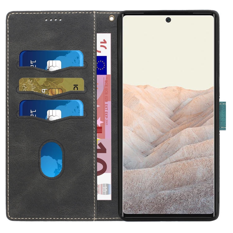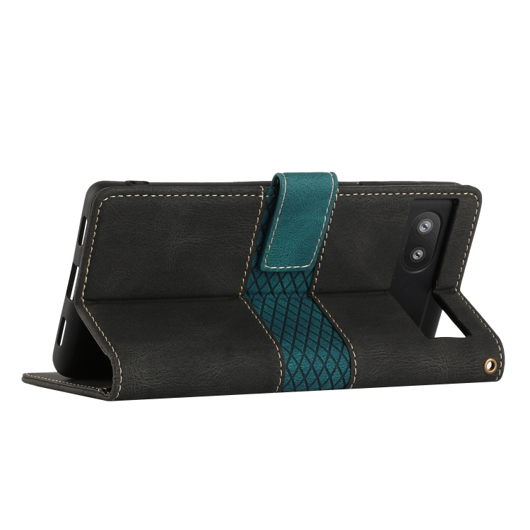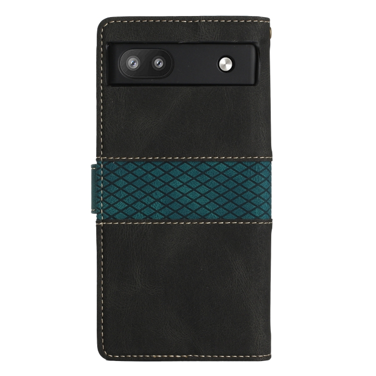 Funda de Cuero con Costuras en Cuadrícula para Google Pixel 6A con Cordón (Negro)