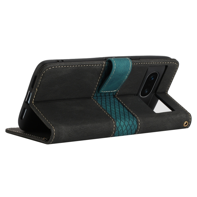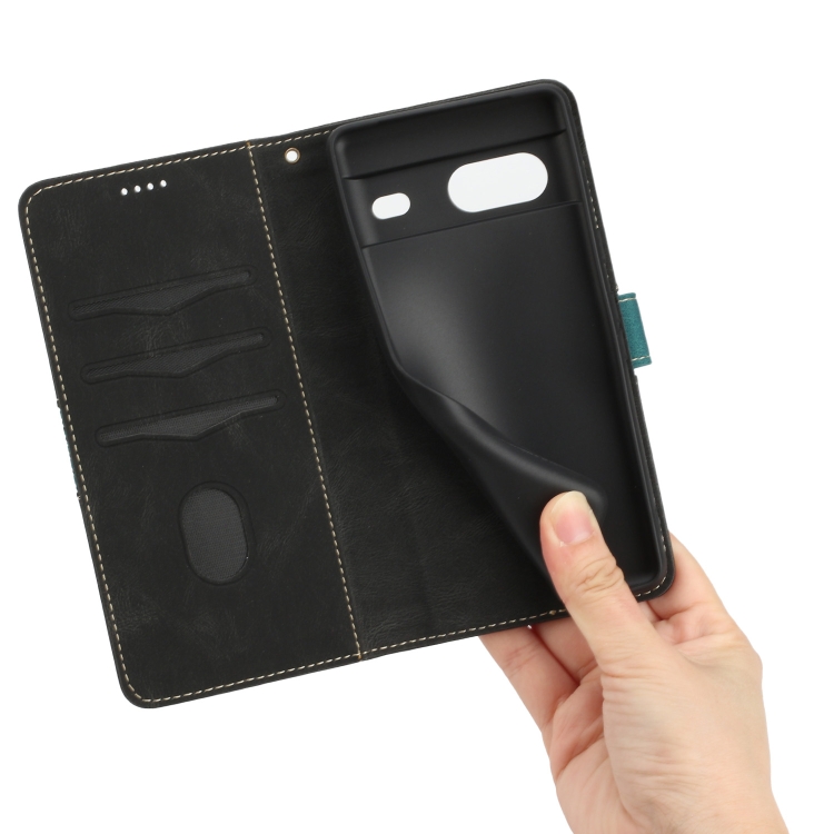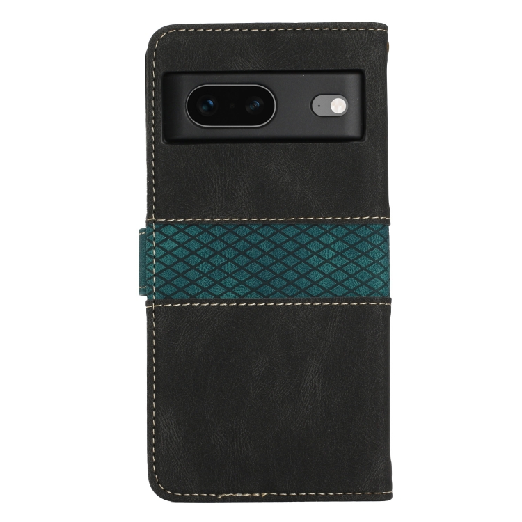 Funda de Cuero con Costuras en Cuadrícula para Google Pixel 7 con Cordón (Negro)