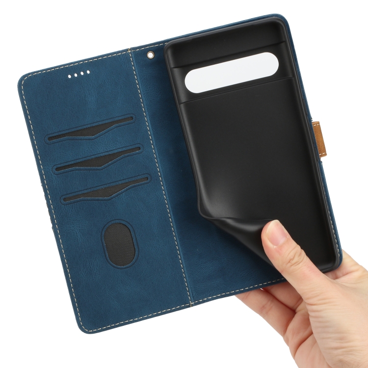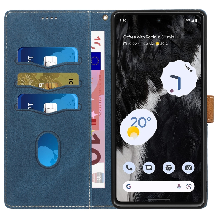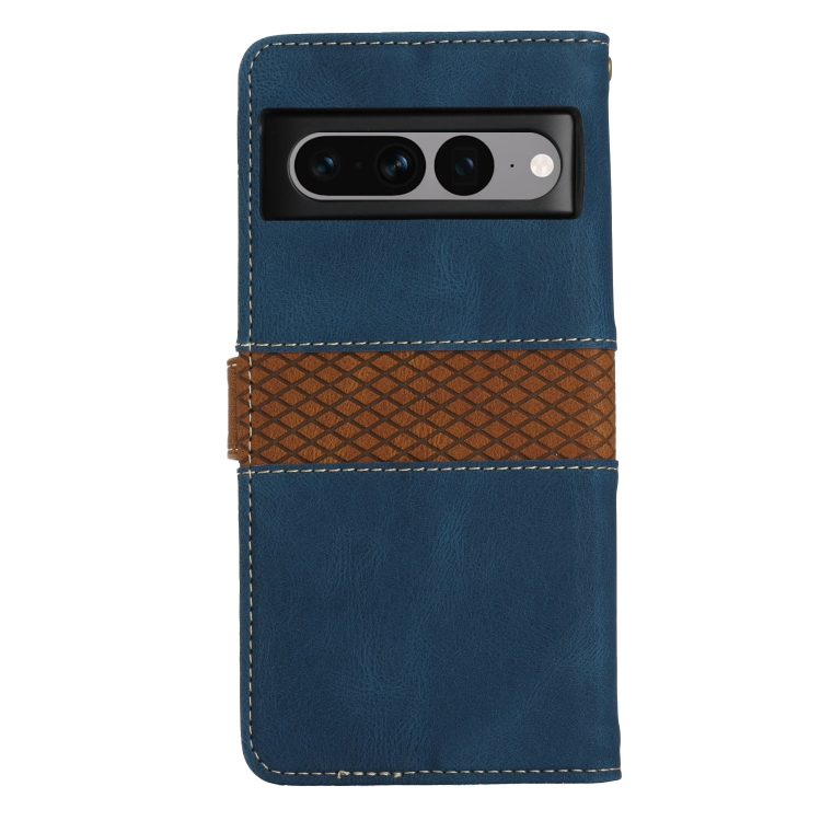 Funda de Cuero para Google Pixel 7 Pro con Costuras en Cuadrícula y Cordón (Azul)