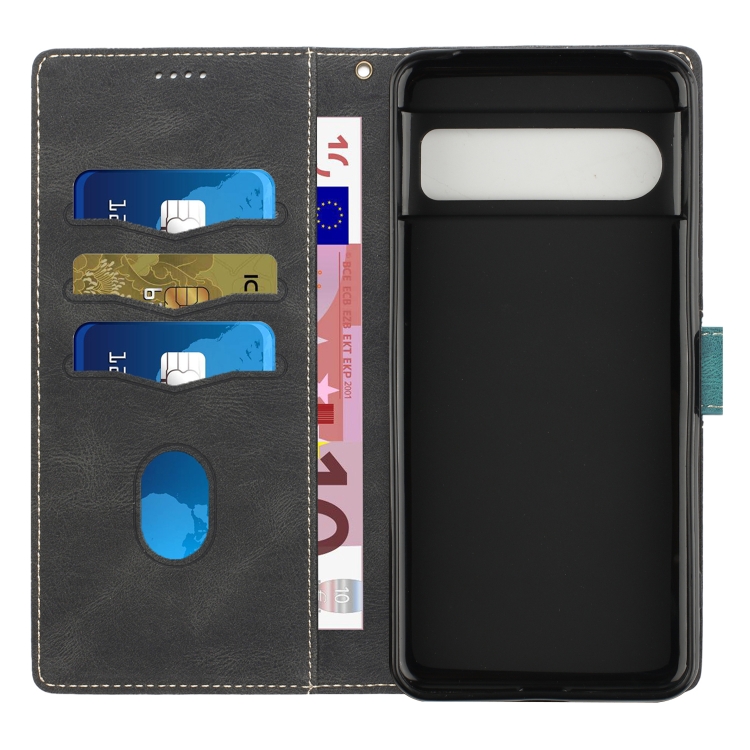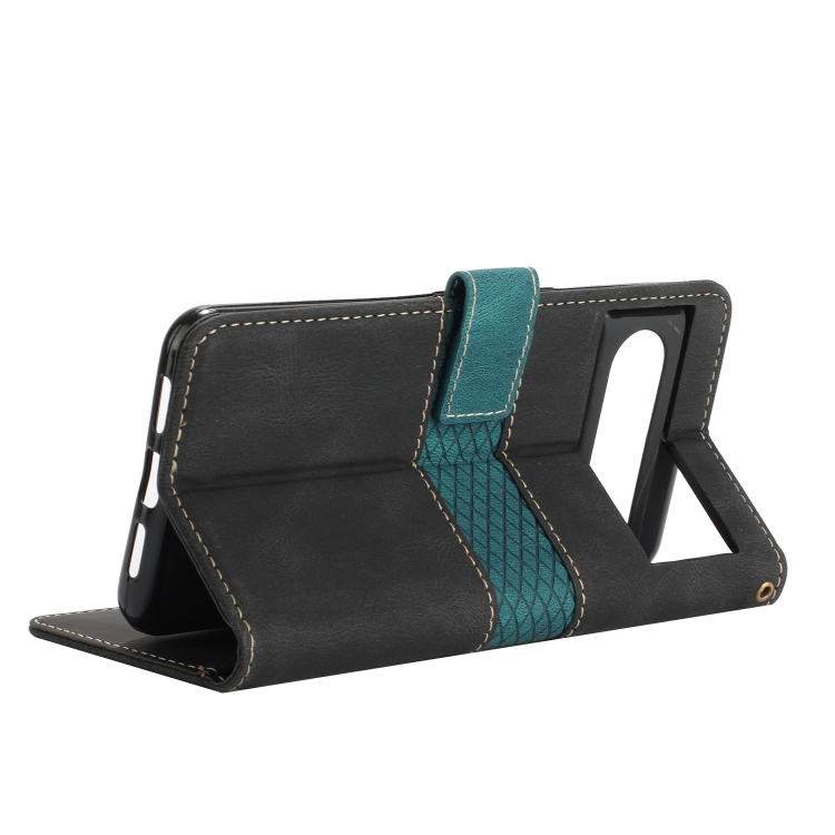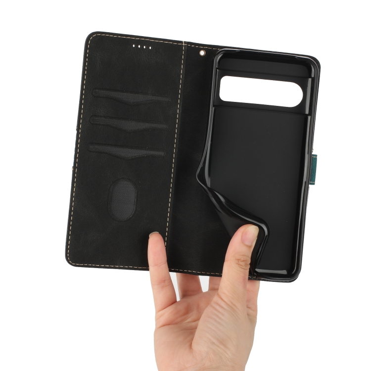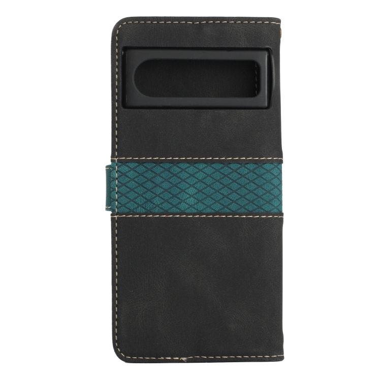 Funda de Cuero con Costuras en Cuadrícula para Google Pixel 8 Pro con Cordón (Negro)