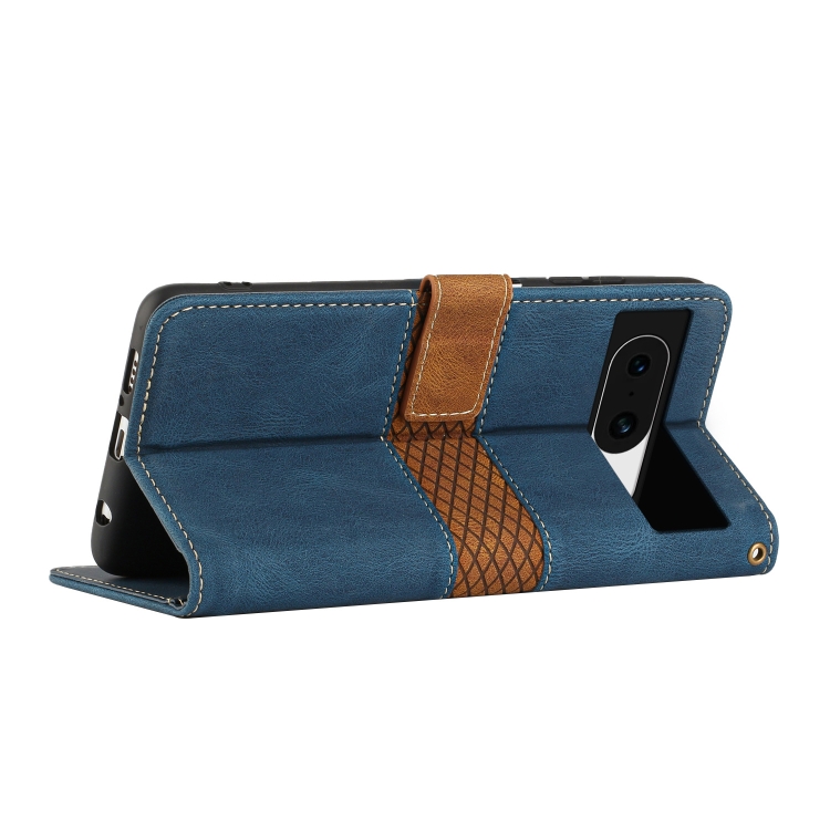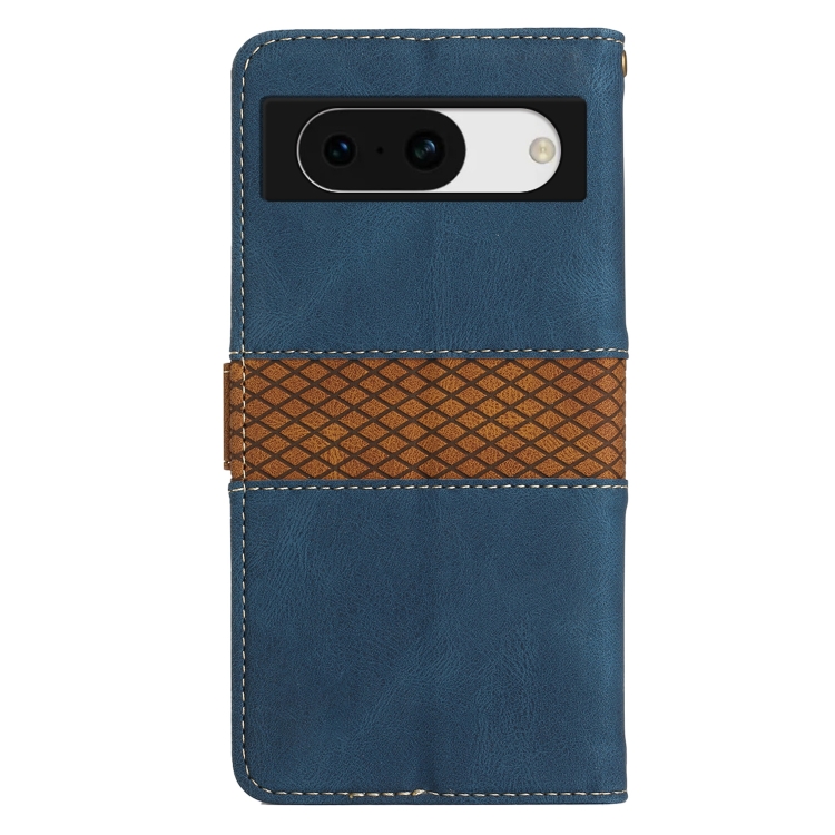 Funda de Cuero con Costuras en Cuadrícula para Google Pixel 8A con Cordón (Azul)