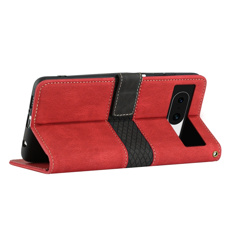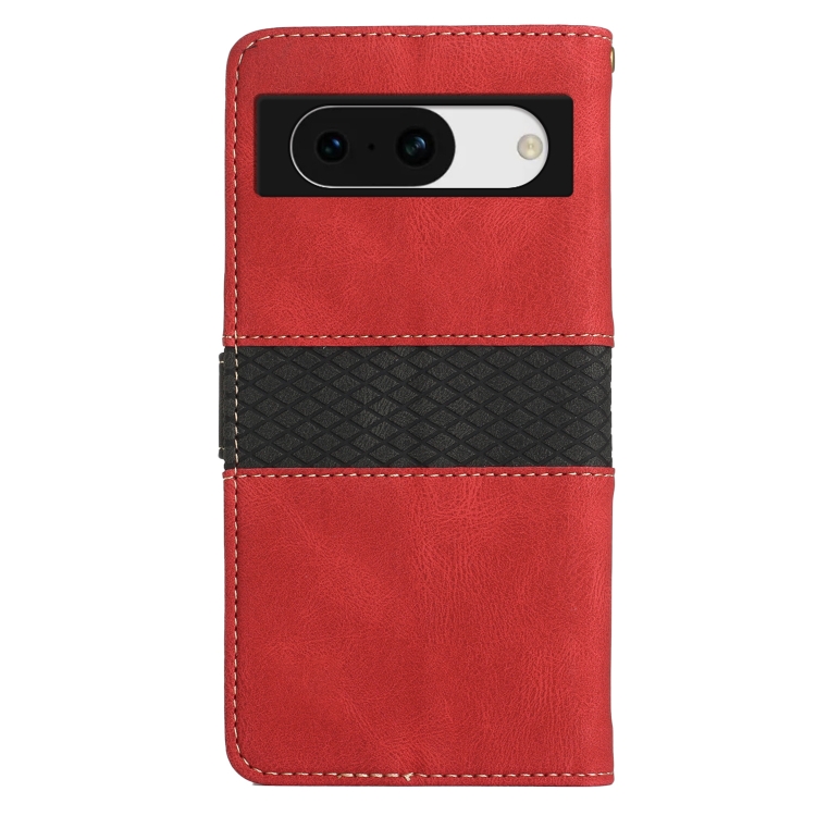 Funda de Cuero para Google Pixel 8A con Costuras en Cuadrícula y Cordón (Rojo)