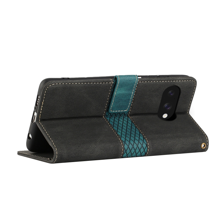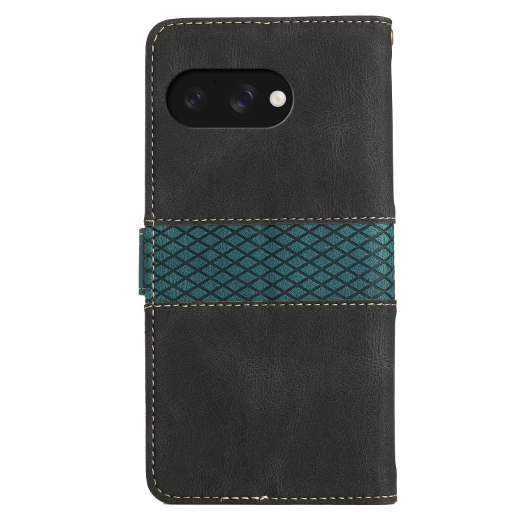 Funda de Cuero con Costuras en Cuadrícula para Google Pixel 9A con Cordón (Negro)