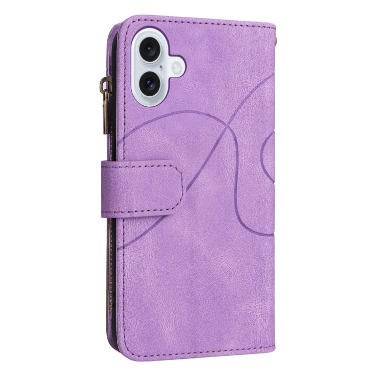 Funda de cuero con cremallera para iPhone 17, bicolor, con 9 ranuras para tarjetas (morado)