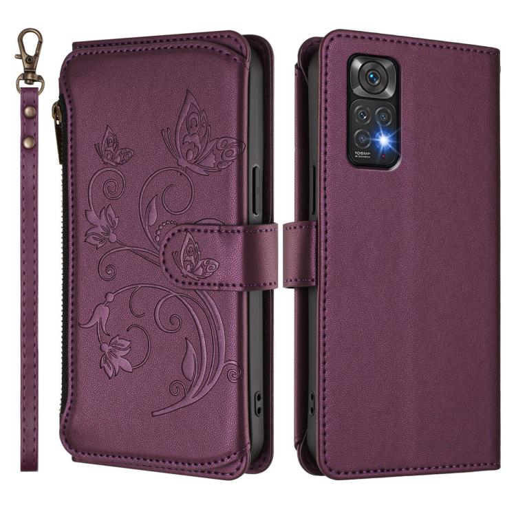 Funda de cuero con cremallera para Redmi Note 12S / Redmi Note 11S 4G, diseño de mariposas, flores y mariposas (morado oscuro)
