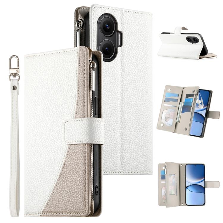 Funda de cuero con cremallera para Redmi Turbo 4 Pro y Xiaomi Poco F7, con costuras, para múltiples tarjetas y correa corta (blanca)