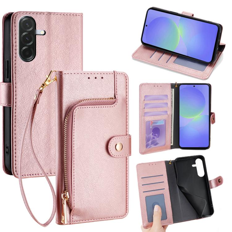Funda de cuero con cremallera para Samsung Galaxy A36 5G (oro rosa)