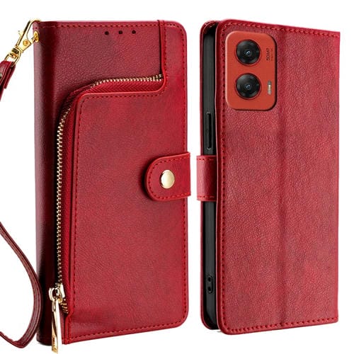 Funda de Cuero con Cremallera para Motorola Moto G Stylus 5G (2024) (Rojo)