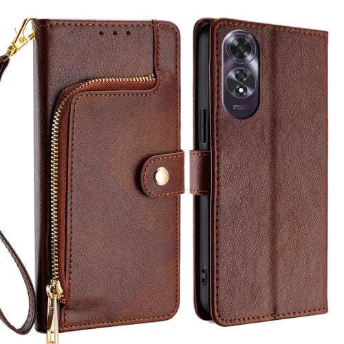 Funda de Cuero con Cremallera para Teléfono Oppo A60 4G Global (Marrón)